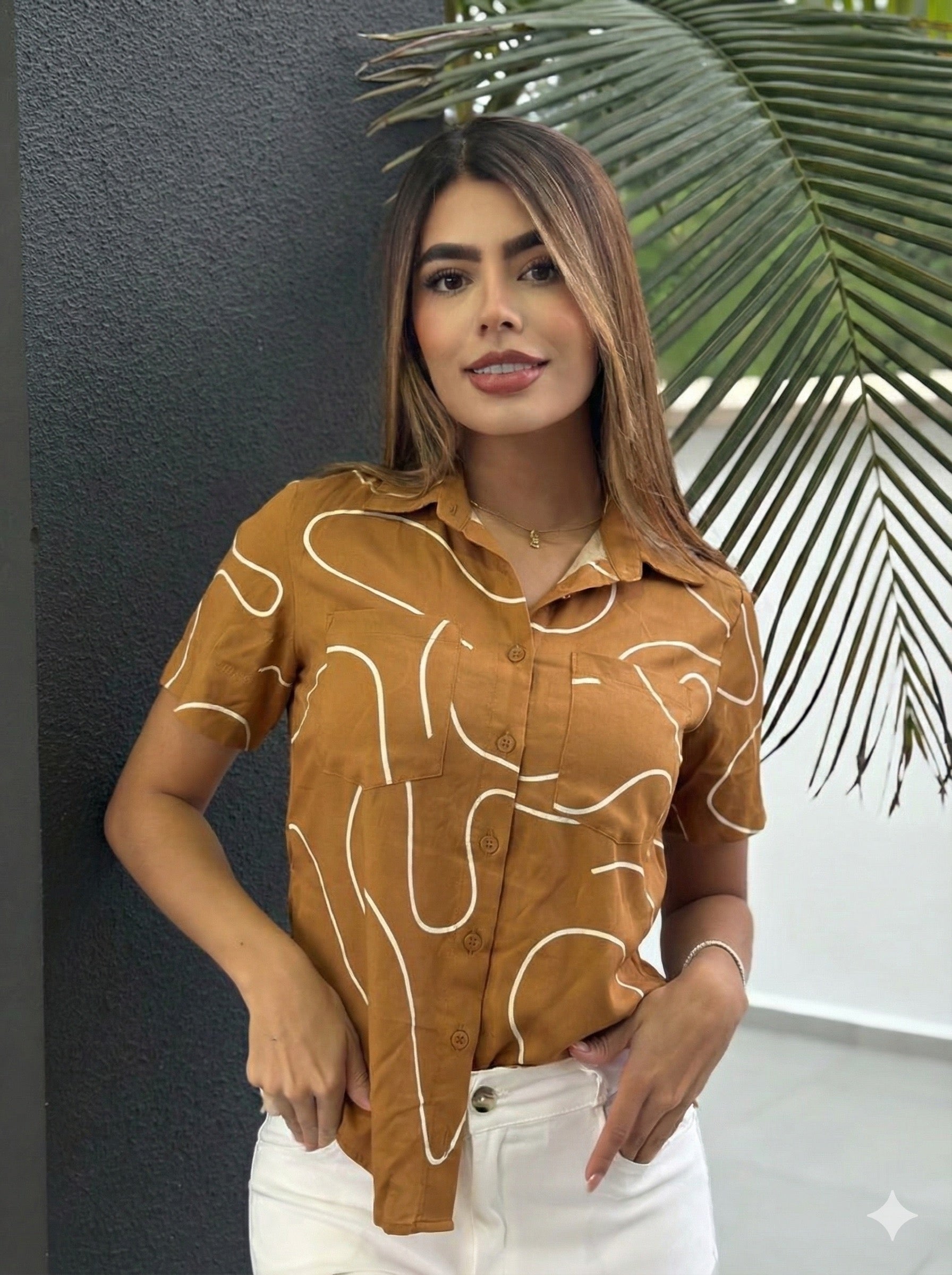 Blusa camisera para dama confeccionada en chaliz stretch, un tejido cómodo y versátil que se adapta perfectamente al cuerpo. Cuenta con un elegante estampado que le da un toque distintivo a tu look. Ideal para usar en el día a día, en la oficina o en ocasiones casuales. Su corte clásico y material de calidad garantizan durabilidad y comodidad durante todo el día.